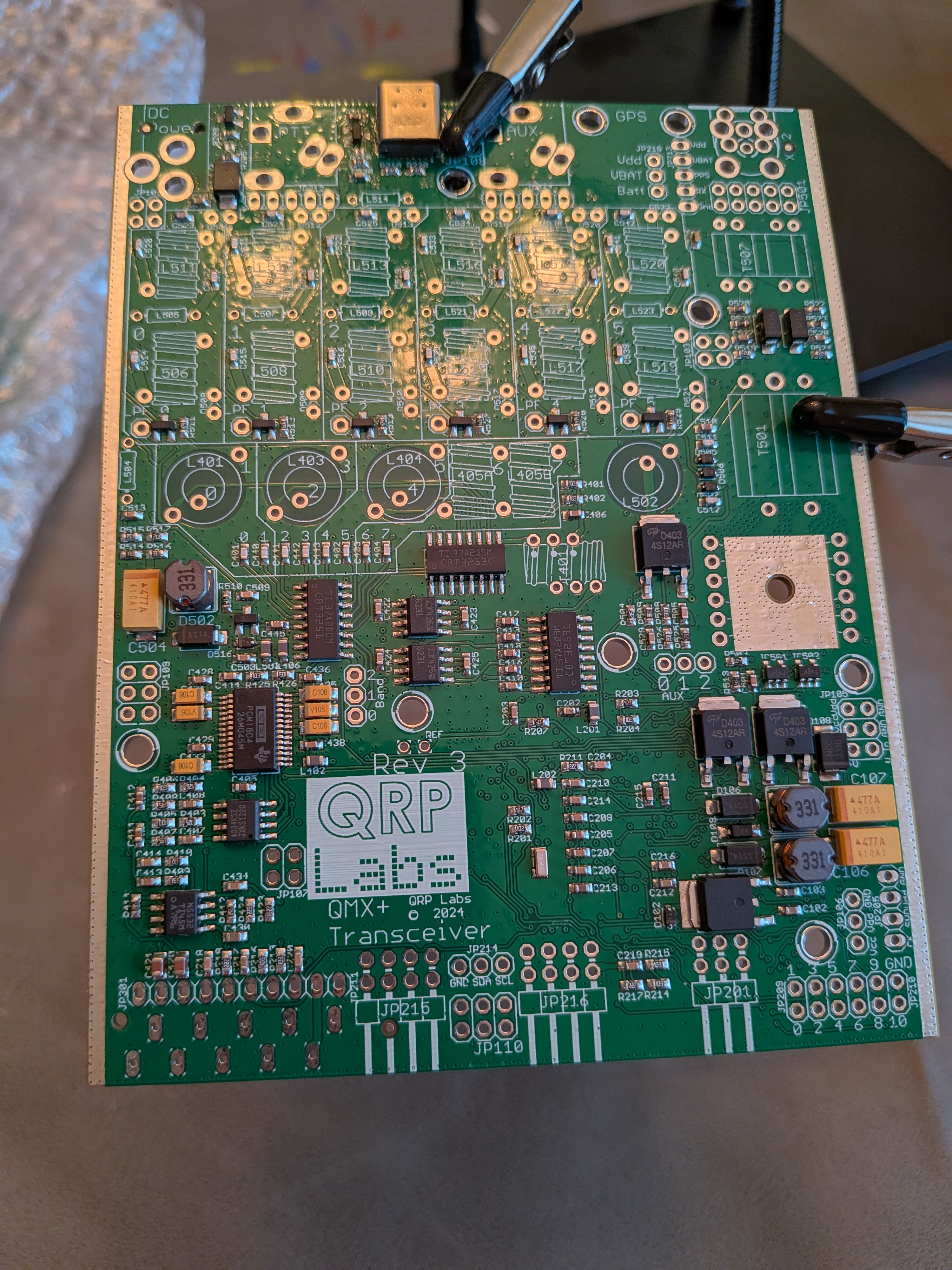 Here's the QMX+ radio's main board, before I got started. Thankfully the kit starts off with a lot of smaller components attached already, or there's no way I'd get anywhere (my soldering skills are basic, but hopefully enough to take on this project). I'm following the assembly instructions provided, which describe the assembly process as "quite straightforward, but very detailed". (Follow along if you want!)