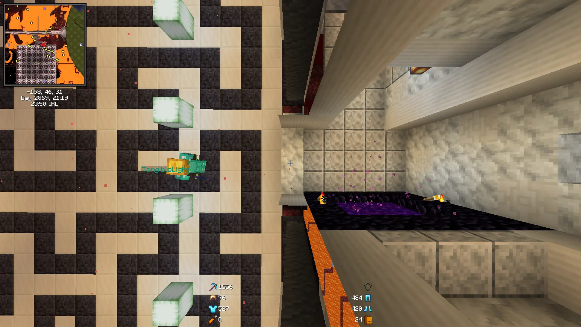 The one caveat is that we play withBig thanks to @teaearlgraycold for disabling that!ender_pearls_vanish_on_deathenabled, so if you die you'll need to travel to each node and reload.