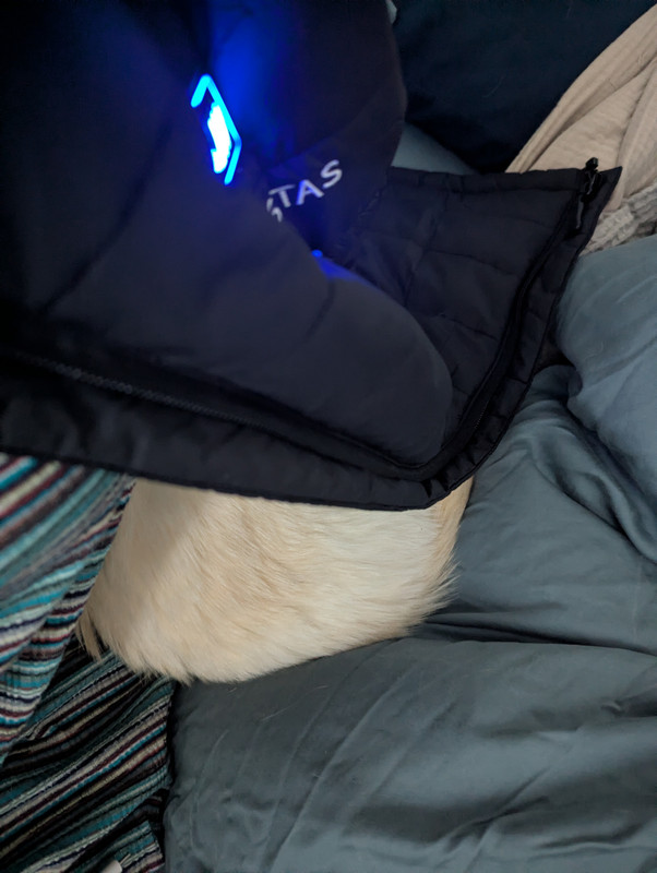 patience_limited LinkSpouse got me a battery heated vest for the holidays. I did not expect that I'd be sharing it permanently with the cold-hating cat. But now the vest also makes a pleasant purring noise.Spouse got me a battery heated vest for the holidays. I did not expect that I'd be sharing it permanently with the cold-hating cat.
