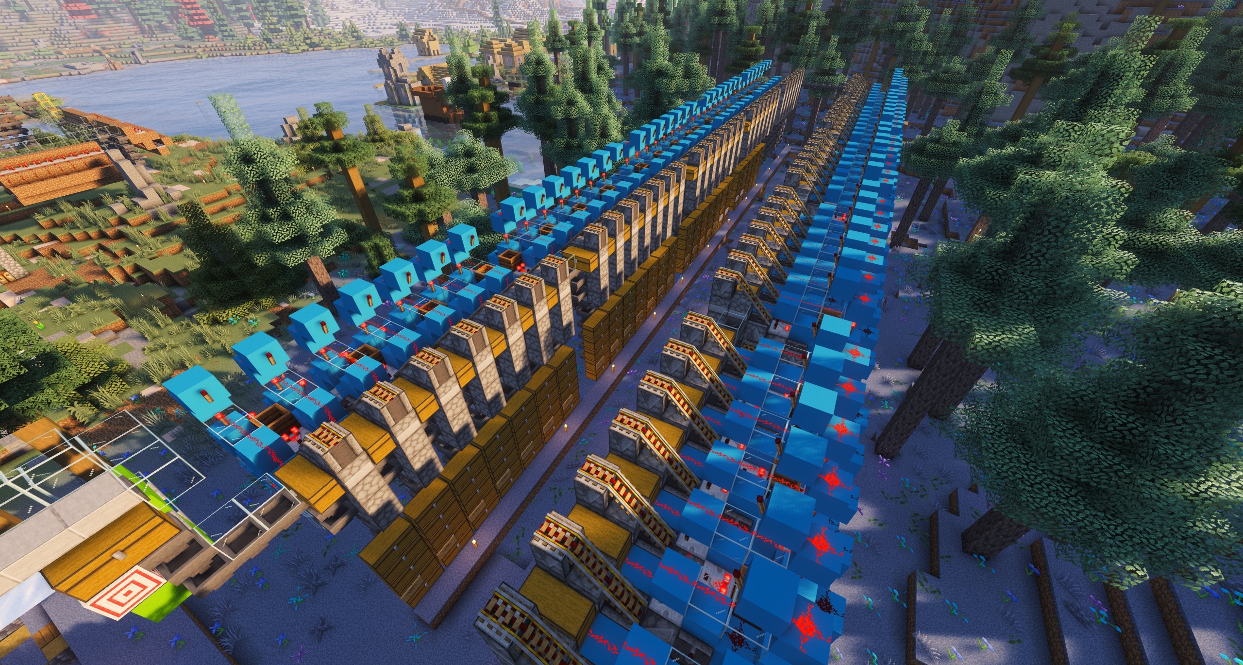 I've added a (slow, inefficient) squid ink farm (17 66 -133) - it's good enough for when the resident pickle afks in the industrial district to stack up over several days, but it's immensely slow because I didn't want to ruin the river. If we at some point need a better, faster farm, it'll have to be away from the scenic views of the industrial district. I mostly just wanted some black glass, and detoured to build a farm while I was bumbling around. It's far slower than just killing squids with looting 3, but there's like a full chest of ink in there now so it's something!