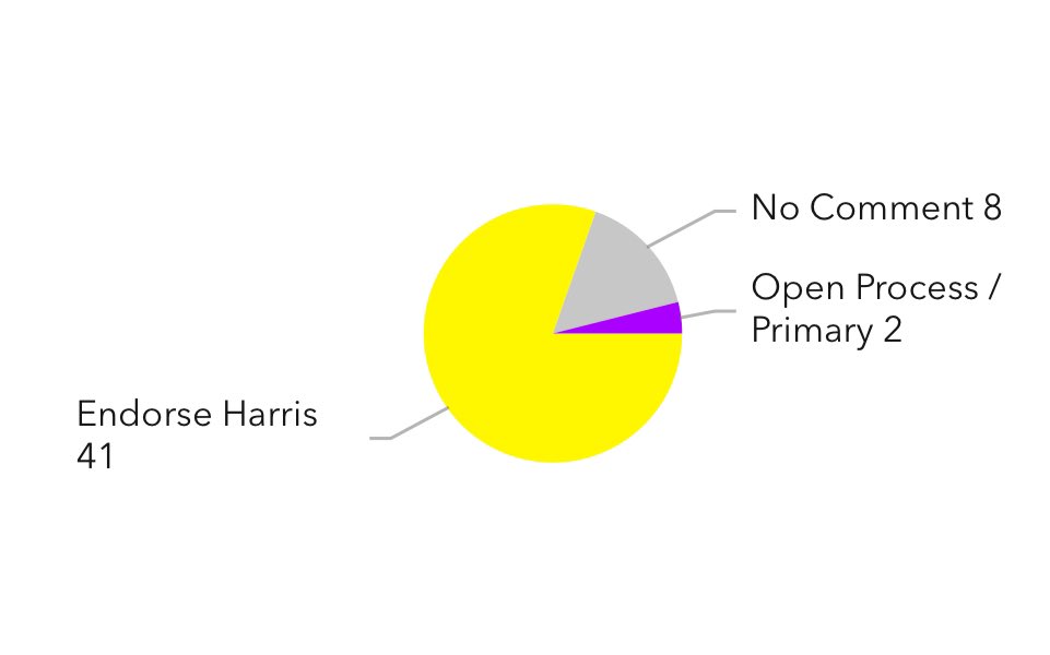 Within 24 hours, Harris has received the endorsements of something around 75% of Democratic legislators from both house and Senate according to an endorsement tracker of her online and the delegates of about a quarter of the convention already, and ActBlue registered nearly 100 million dollars from small-dollar donations to what is now her campaign, the party has readily ralllied around her. Outside the party, Romney and Pence have appreciated his decision and wished him well.
